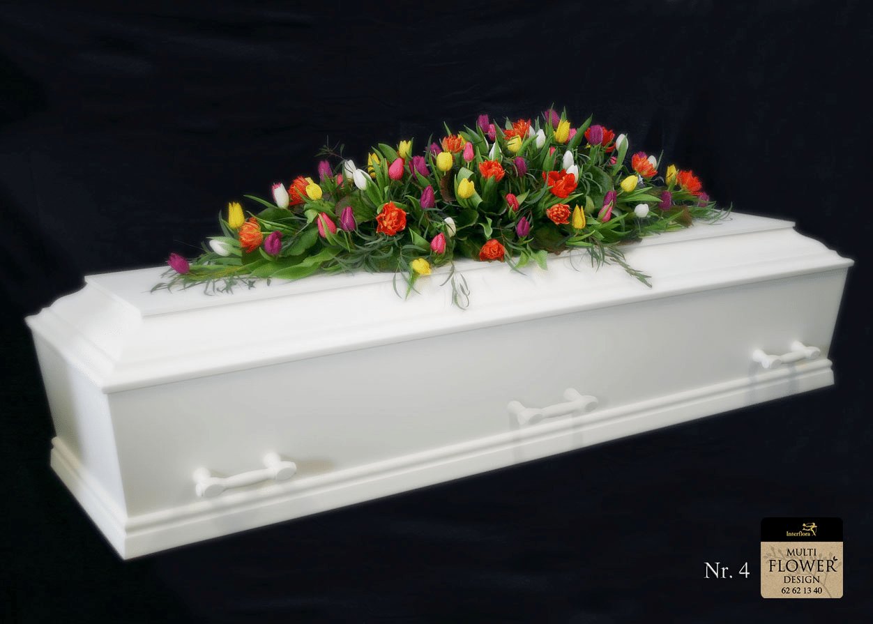 Et smukt sidste farvel med blomster – hvad enten det skal være en blomsterkrans, båredekoration eller bårebuket. Der er naturligvis mulighed for at vedlægge en personlig hilsen og bestille bånd med inskription til det sidste farvel.